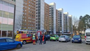 Am Mittwochvormittag ging bei der Integrierten Leitstelle Schweinfurt die Auslösung einer Brandmeldeanlage in einem Hochhaus im Schweinfurter Stadtteil Bergl ein. Aufgrund der Objektgröße alarmierte die Leitstelle die Feuerwehren Schweinfurt und Geldersheim mit dem Einsatzstichwort „B BMA 2“ in die Hermann-Barthel-Straße.