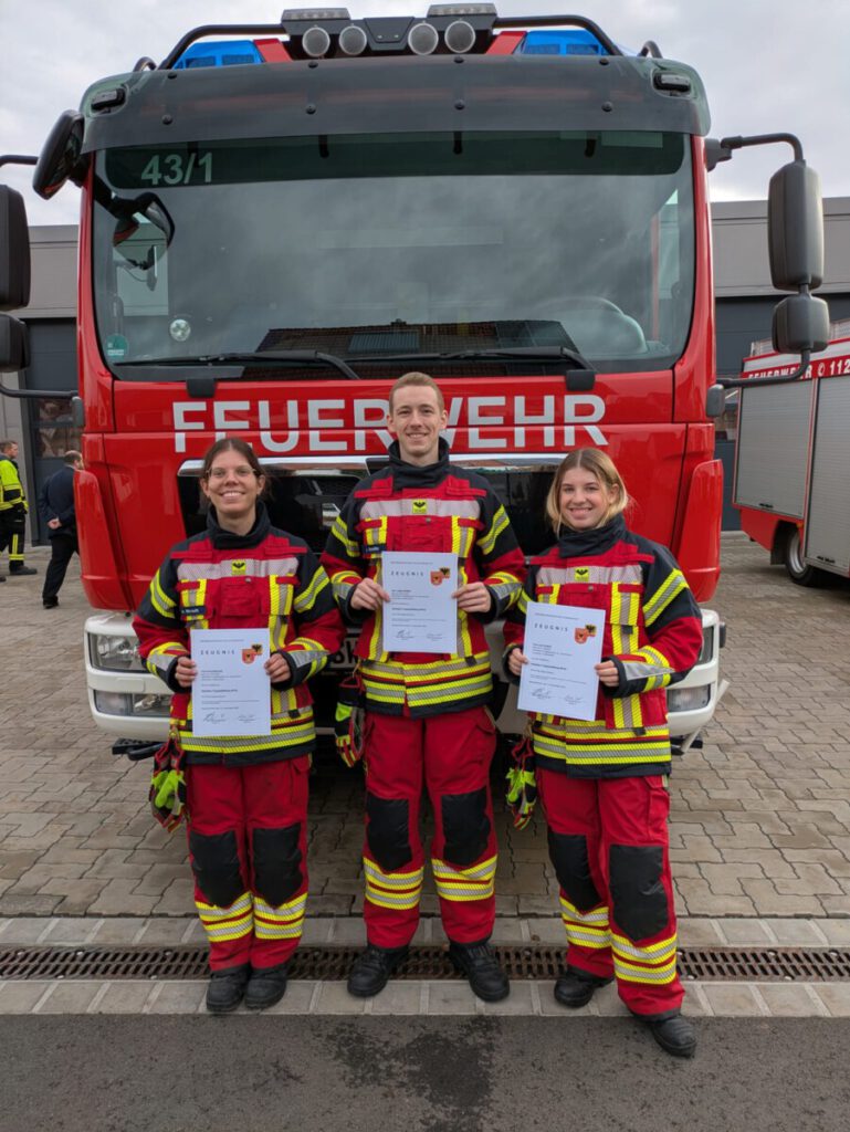 Am Samstag, 15.11.2025, haben zwei Feuerwehrkameradinnen und ein Feuerwehrkamerad die Abschlussprüfung der Modularen Truppausbildung (MTA) erfolgreich abgelegt.